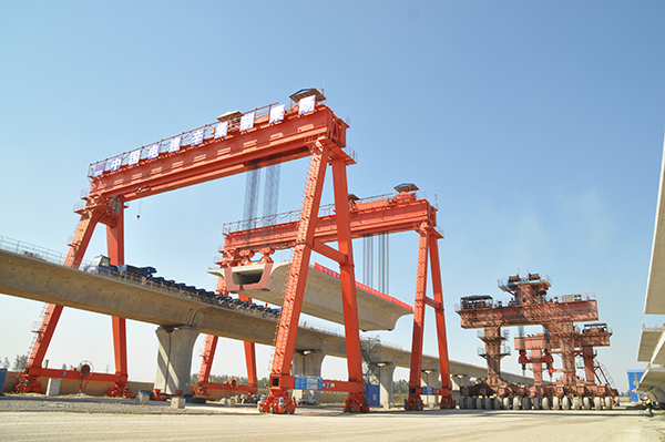 鄭州市華中建機(jī)有限公司制造的兩臺MGHZ450龍門吊,外形尺寸42800*17300*33300(mm),設(shè)備重量420T。