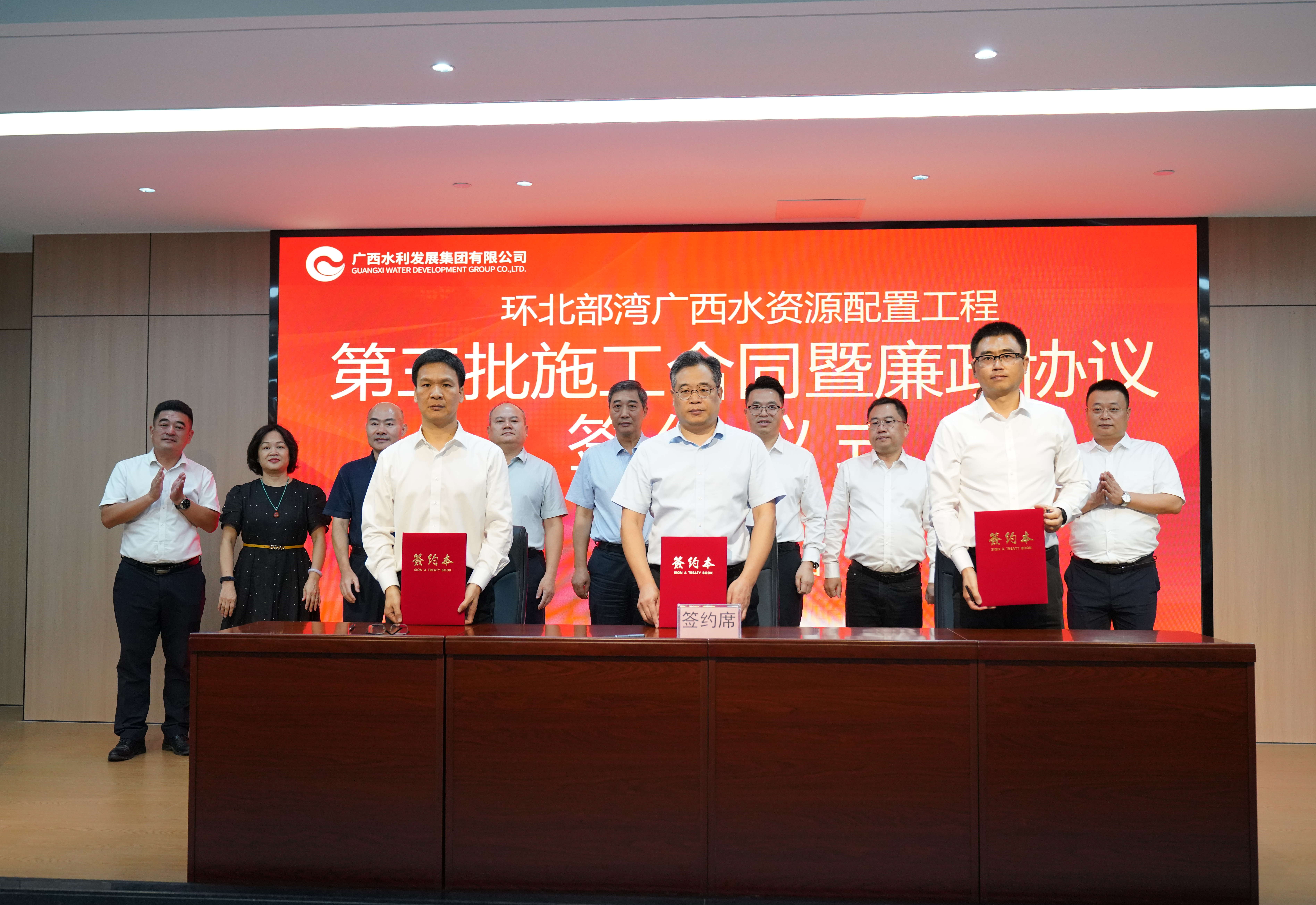 10月25日,環(huán)北部灣廣西水資源配置工程第三批施工合同暨廉政協(xié)議簽約儀式在廣西南寧舉行,廣西水利發(fā)展集團有限公司黨委書記、董事長閆九球,水電八局副總經(jīng)理李剛出席儀式。