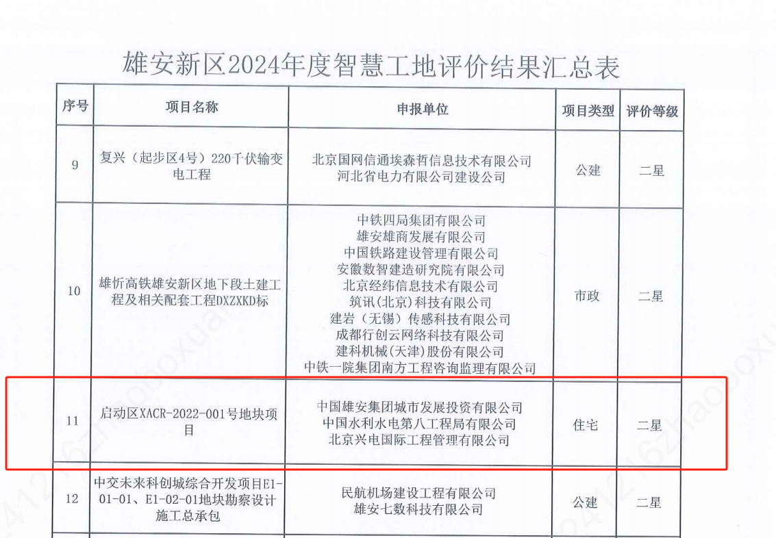 12月17日,啟動(dòng)區(qū)XACR-2022-001號地塊榮獲雄安新區(qū)建交局2024年二星級智慧工地評價(jià)。